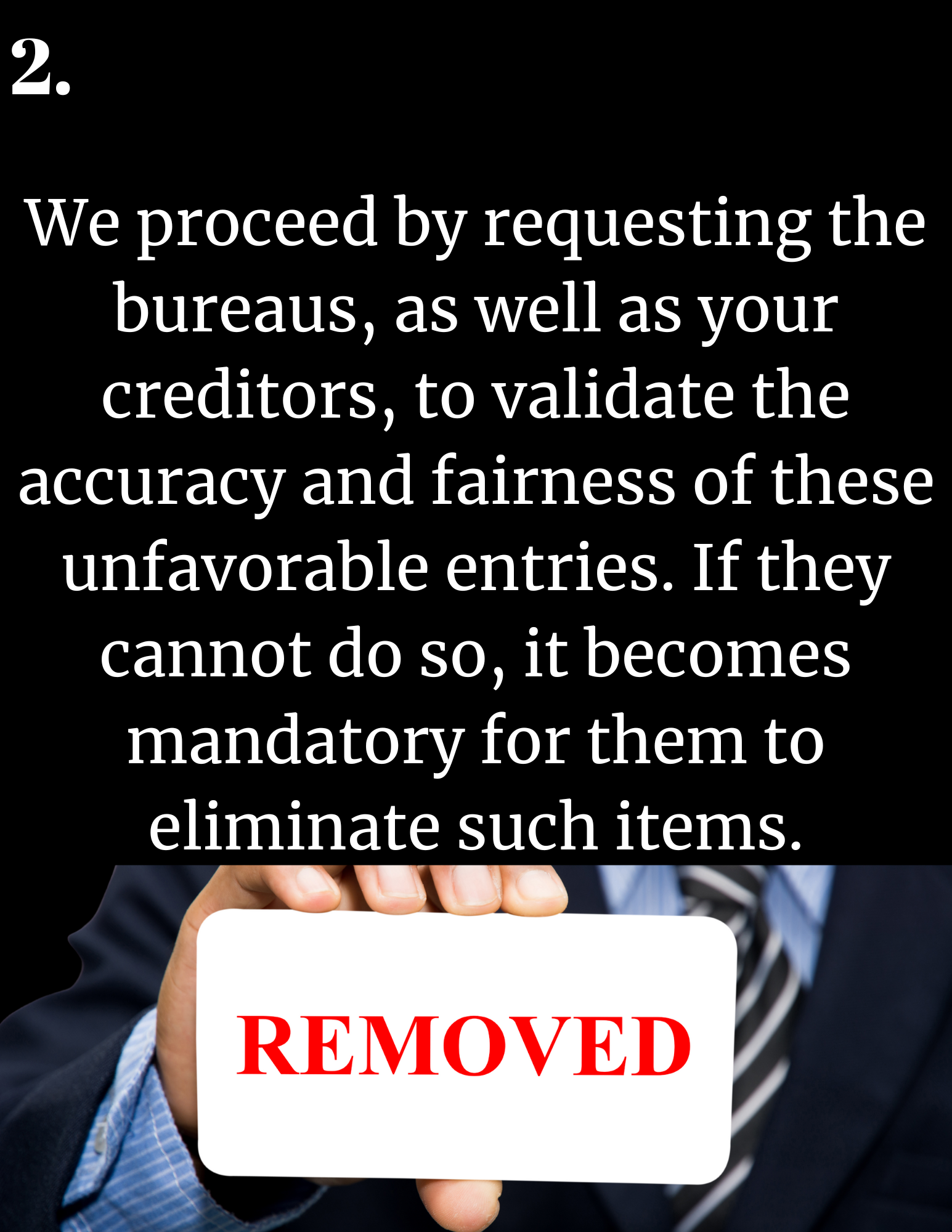 After you sign up, please return here to complete “STEP 2”, below. Once we receive your information, we will generate your personal credit evaluation and recovery plan.